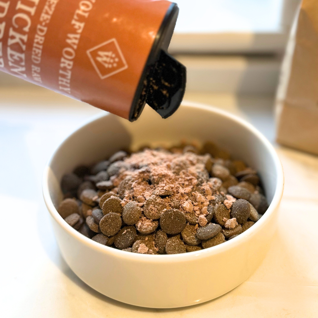 Sprinkle over Wolfworthy or other dry foods to introduce variety when needed.